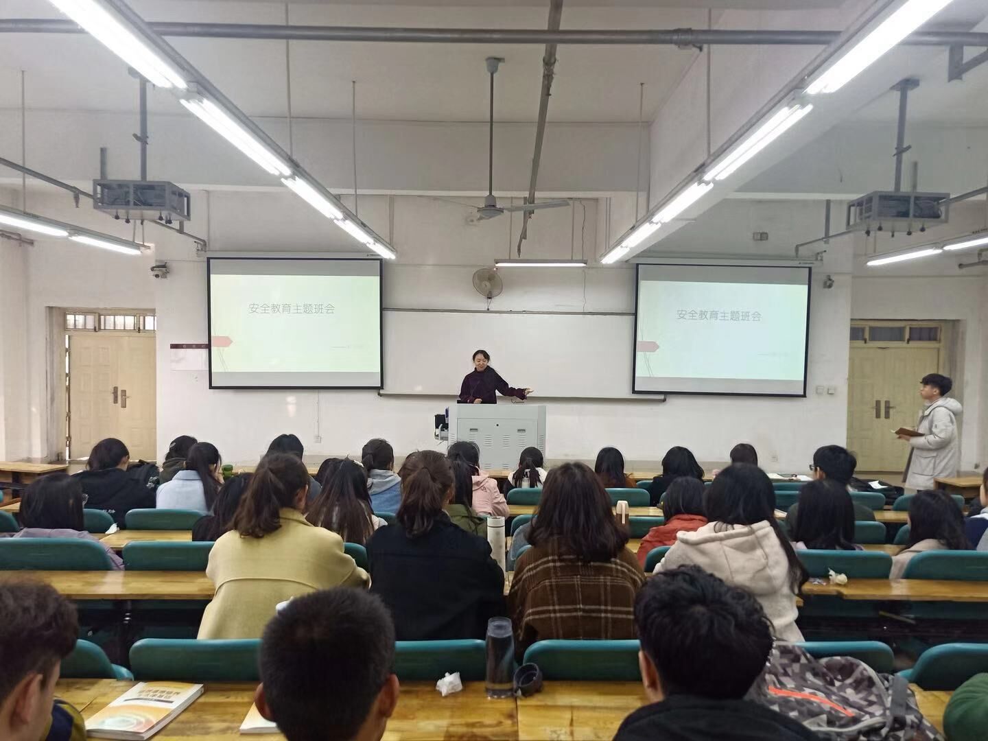 班会内容包括安全教育和学风建设。团学口老师从消防安全、人身财产安全、网络安全、交通安全、饮食安全、运动会安全和春季传染病防治等角度,全面细致的对每个班的同学进行了安全教育。并通报了本院考研情况,上学期期末考试情况和本学期对学风、考勤的要求。