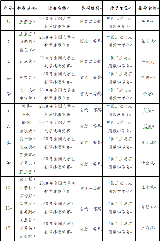 全国大学生数学建模竞赛河南赛区的分赛从2018年9月13日开始,为期4天。新葡萄官网参加数学建模成绩揭晓,具体获奖情况如下: