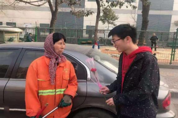 志愿者们向交通协管员认真学习交通指挥知识后,开始协助疏导交通;帮助绿化工人浇灌花卉;向食堂阿姨致以亲切的节日问候。活动最后,志愿者为平凡可敬的她们献出了3.8妇女节的第一束花,为他们送上节日祝福。