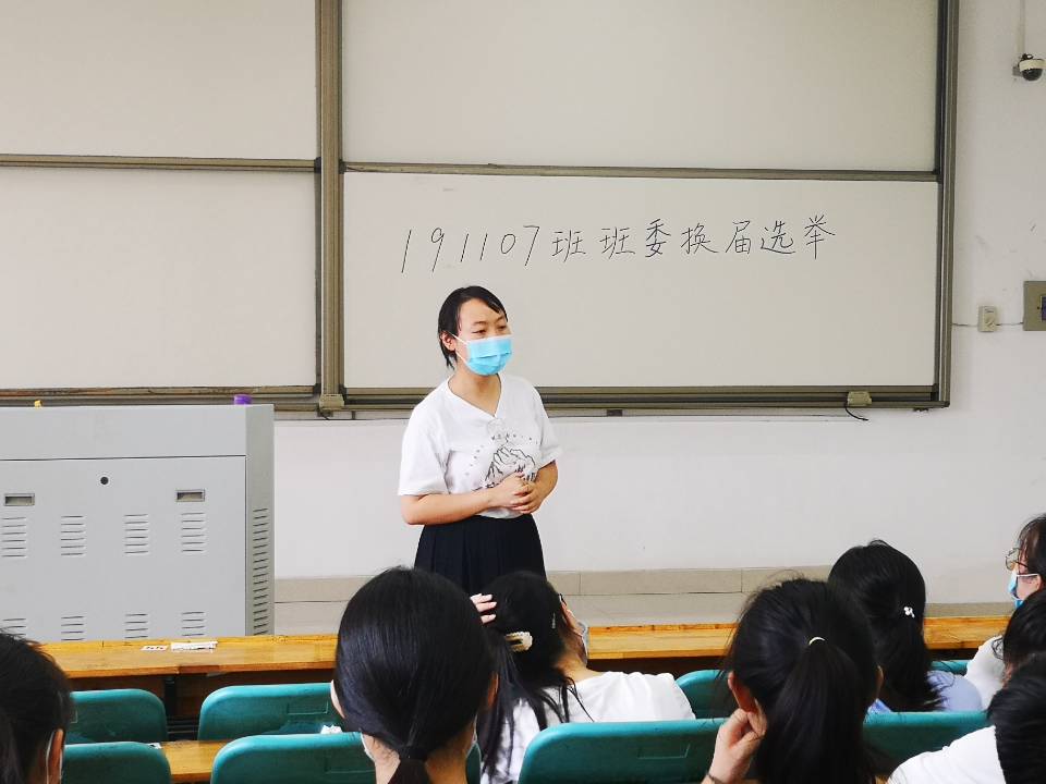 会议伊始,郭粹介绍了学校疫情防控常态化下学生教育管理服务的要求,结合学院实际,解答了同学们关心的问题。并要求学生每天测量体温,钉钉打卡,记录行程,及时上报。郭粹强调,如有发热学生,需按照学校要求第一时间上报信息、到校医院配合医生,按照学校相关要求到规定医院进行诊断治疗。希望同学们自觉做好疫情防控工作,对自己和周围同学的生命负责。随后,学院主要学生干部分批组织19级各班开展班委换届选举活动。此次选举秉承公平、公正、公开原则,由竞选人依次发言,班级学生进行投票,按得票数优先选择。同学们积极配合,踊跃参与。