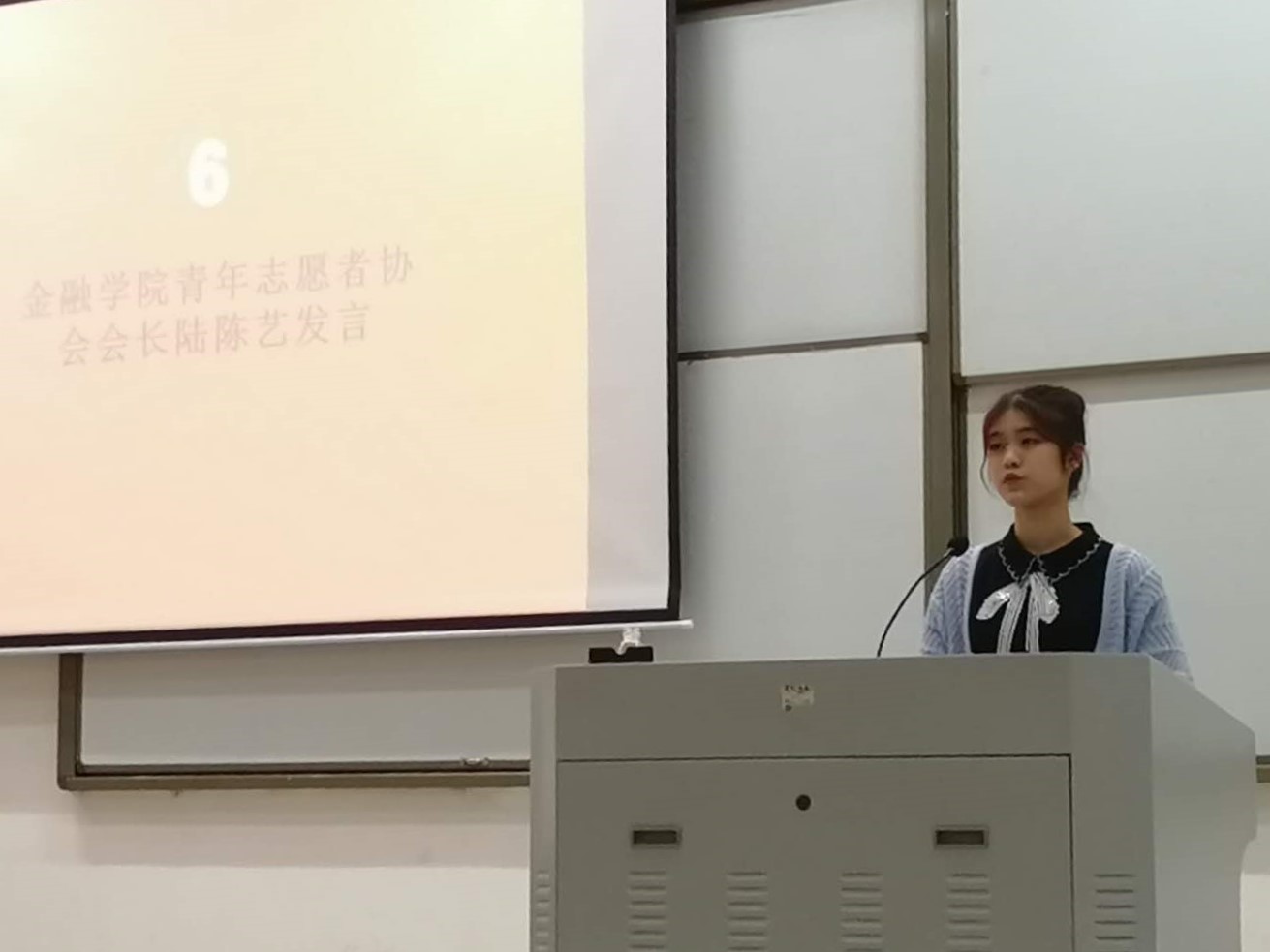 本次会议由青协会长夏秋波主持,会议以PPT的形式向参会人员展示了往年的志愿者活动,让大家更多地了解青协这个大家庭。金融学院青年志愿者协会会长陆陈艺受邀出席此次会议。陆陈艺同学、新葡萄官网团副张懿涵和18级抗疫志愿者代表纷纷发言,讲述自己的志愿服务经历和对志愿服务精神的理解。20级青年志愿者代表也表达了自己对志愿服务的认识以及对青协未来活动的热切期待。接着由青协主要工作人员带领全体志愿者进行了宣誓。宣誓时铿锵有力的声音代表着他们坚定为社会奉献爱心的信念。