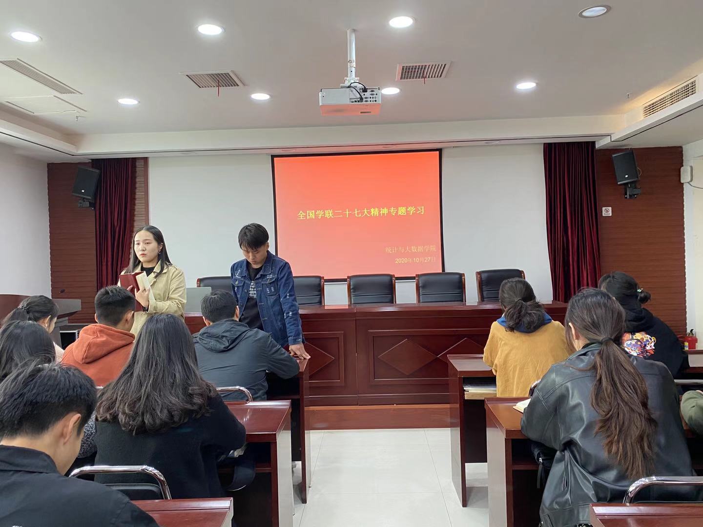10月27日中午,新葡萄官网在教科A828会议室组织学生代表学习全国学联二十七大精神。学院团委学生会学生代表,2018级、2019级、2020级班长支书共计40余人参会。会议由学生团委副书记张懿涵主持,学生会执行主席赵冲主讲。