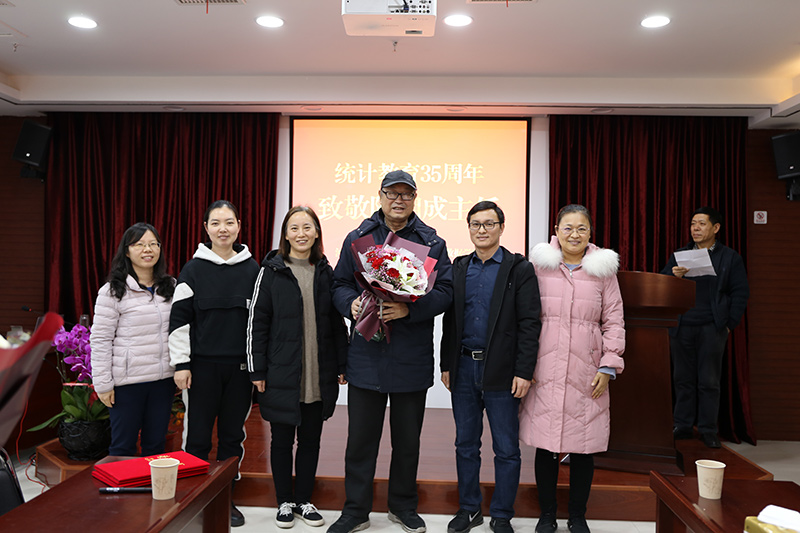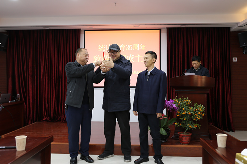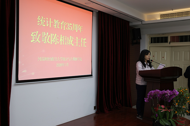 2020年01月10日下午,学院隆重举办仪式活动,纪念统计教育35周年,并向陈相成教授致敬。院领导班子成员和全体教职工参加活动。陈相成教授作为特约嘉宾出席活动。部分校友代表应邀参加活动。