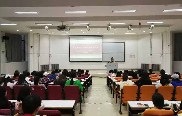 4月26日由2014级10名优秀考研学生代表主讲,包括400分以上高分考生3人,各科单科最高分4人,专升本、跨专业、精算专业等考研方向3人。他们从考研心路、各科复习方法以及笔试、面试技巧等方面入手,深入浅出生动形象地道出自己的切身体会,向有志于考研的学弟学妹面授经验,答疑解惑。院团总支副书记郭粹出席会议,有考研意向的近400名学生与会聆听。