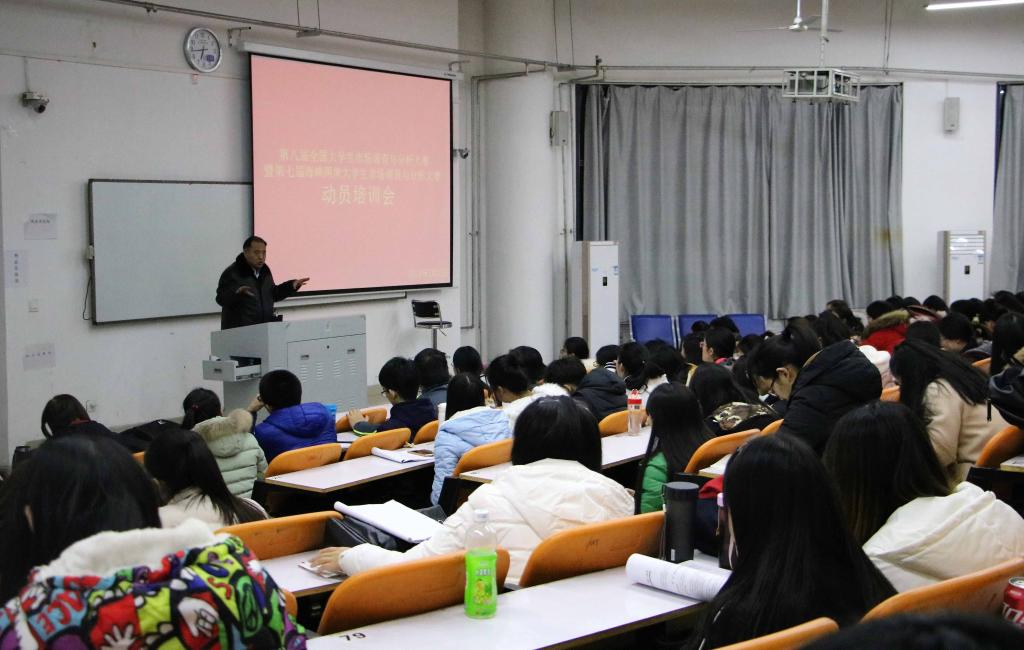 1月11日晚,新葡萄官网于第一教学楼119教室举办第八届全国大学生市场调查分析大赛动员大会,学院党总支书记徐金安,副院长周福林,王兢、岳树岭老师,共计200余名通过海峡两岸网考的学生参加此次会议。本次会议由王兢老师主持。