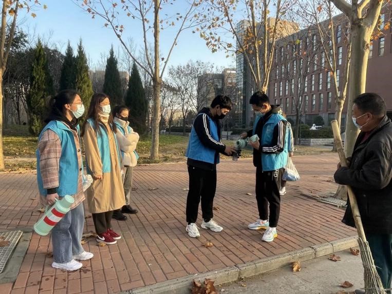 青年志愿者活动有助于广大青年学子树立助人为乐的意识,倡导团结友爱,体现了中华民族的优秀美德,对建设和谐温馨的社会风气有着举足轻重的作用。爱心,是寒冬里的一缕阳光,是沙漠中清澈的甘泉,是旱地上久盼的甘霖,让世界充满真情,让希望充满心间。为此,我支部成员积极参与学校和院内举办的各项青年志愿活动,把志愿者精神融入进自己的日常生活中。冬日送温暖,为我校环卫工人添上热水;疫情战一线,为防疫屏障贡献力量。在我支部中,传递温暖,力所能及地让爱心和希望在社会中传播,已经成为每位支部成员的共识。